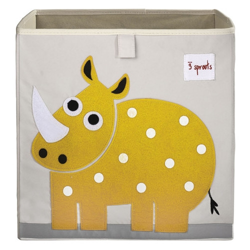 This 3 Sprouts Rhino Storage Box is ideal in the nursery or children's bedroom for storing toys or clothes.  The 3 Sprouts Rhino storage box has sides reinforced with cardboard and is made from 100% polyester with a 100% polyester felt applique.