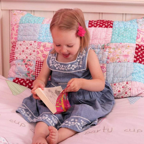 A brightly coloured hand quilted Matilda patchwork pillowcase from Babyface wtih floral, spotty, stripe, paisley and gingham fabrics.  Made from 100% cotton, this brightly coloured pillowcase coordinates beautifully with other Babyface bedding ranges.