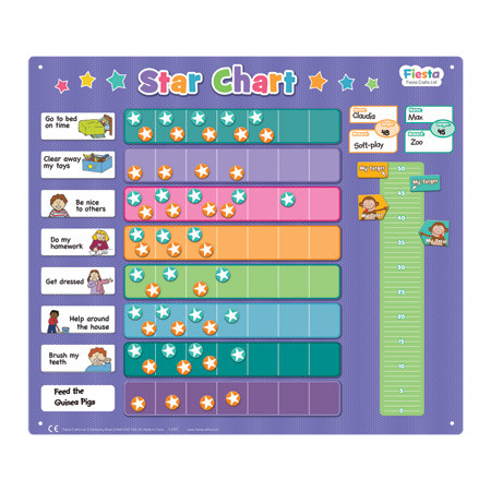 Fiesta Crafts reward charts are fabulous for helping children to remember and achieve tasks, to show progress and celebrate successes. This beautifully coloured chart with an assortment of magnetic pieces features a number of tasks and parents and children may set their own tasks using a dry wipe pen (included). Whatever you and your children are looking to achieve (this chart is suitable for use with two children at once), be it brushing teeth or tidying up this is a great way to encourage and support little ones in a visual way, and to reward them for what they've achieved.