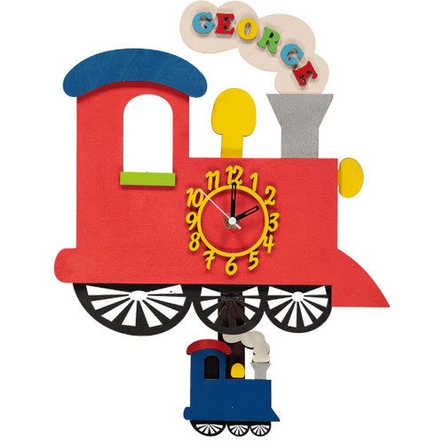 This red train pendulum clock with smoke and a swinging mini train is the most popular of all transport clocks. Choo Choo!