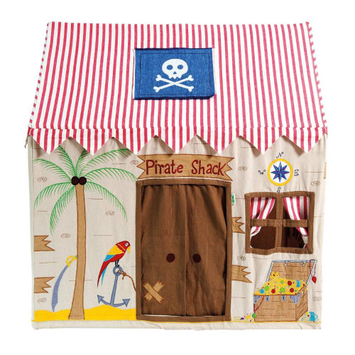 A wonderful Pirate Shack playhouse from Win Green. This Pirate Shack playhouse is appliquéd and embroidered with a colourful parrot, palm tree, treasure chest and compass. On the side, there is an embroidered crows nest! The Win Green Pirate Shack playhouse is easy to assemble with a light aluminium frame. Storage bag included.